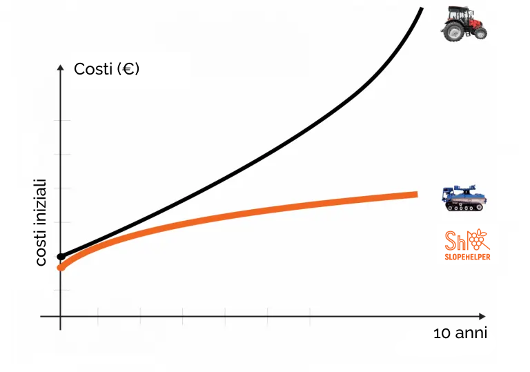 la gestione di vigneti e frutteti. Rispetto ai tradizionali agrosistemi basati su trattori, Slopehelper offre: